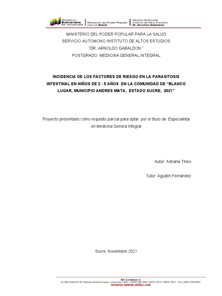 Palabras claves: Factores de riesgos, parasitismo, parasitosis intestinal, parásito.