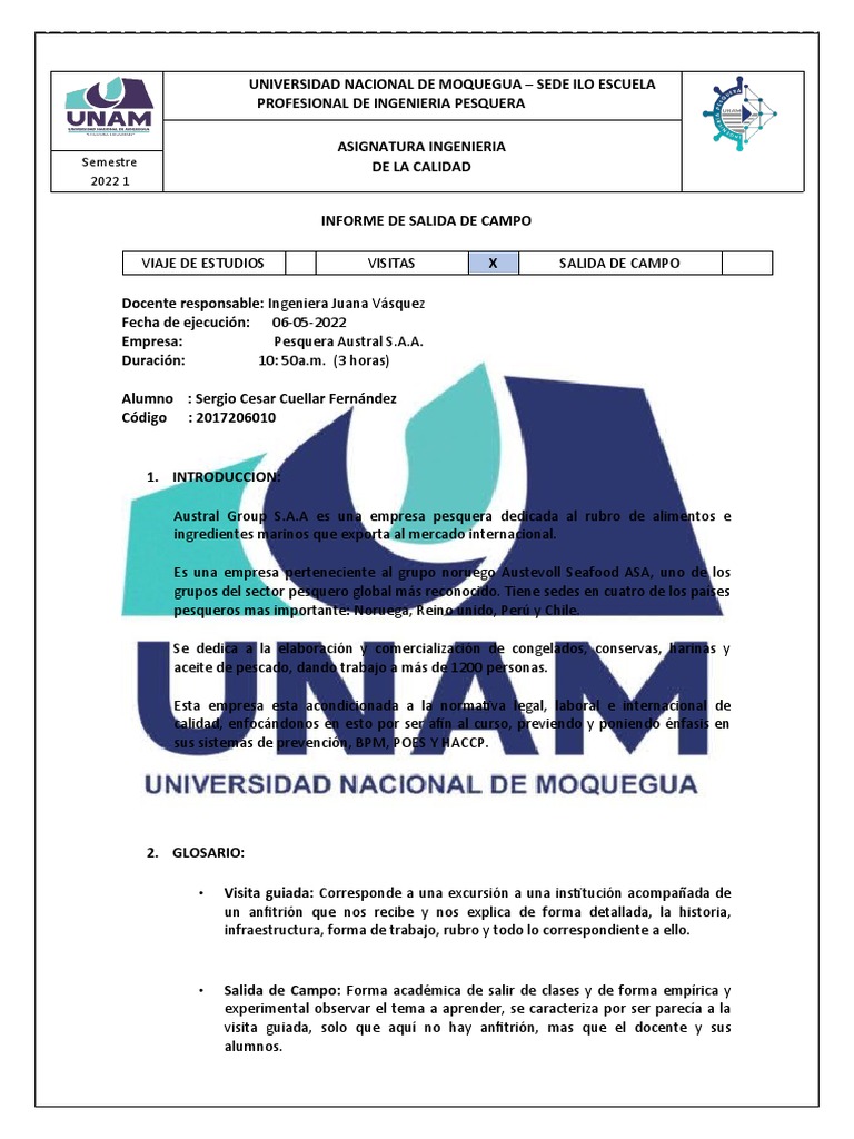 INFORME DE SALIDA DE CAMPO