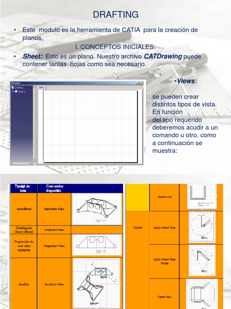 • Sheet: Esto es un plano. Nuestro archivo CATDrawing puede