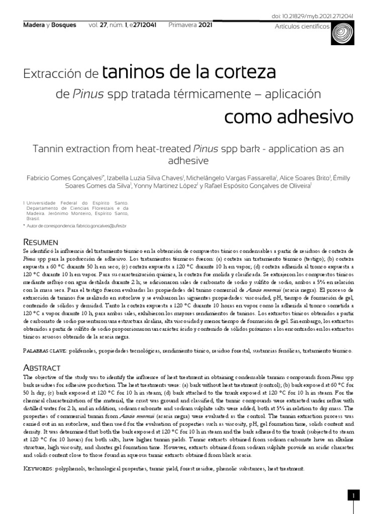 Gonçalves et al. Taninos de corteza de pino para aplicación como adhesivo