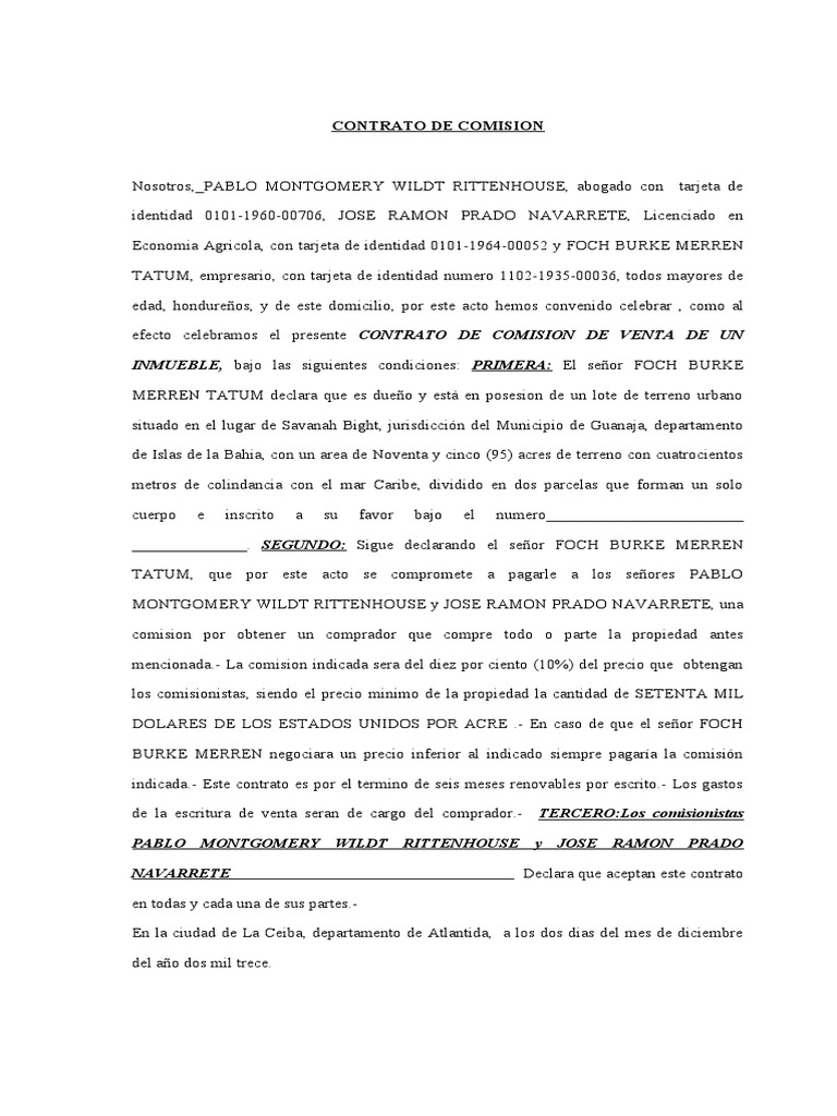 efecto celebramos el presente CONTRATO DE COMISION DE VENTA DE UN