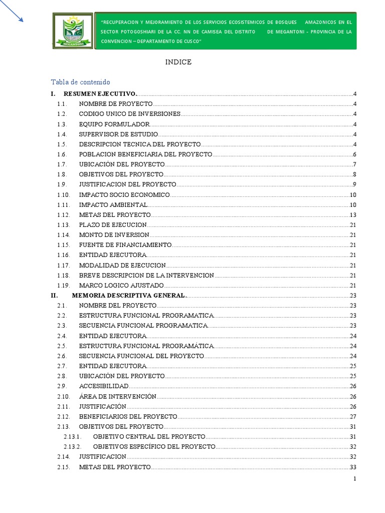 1.10. IMPACTO SOCIO ECONOMICO...............................................................................................................10