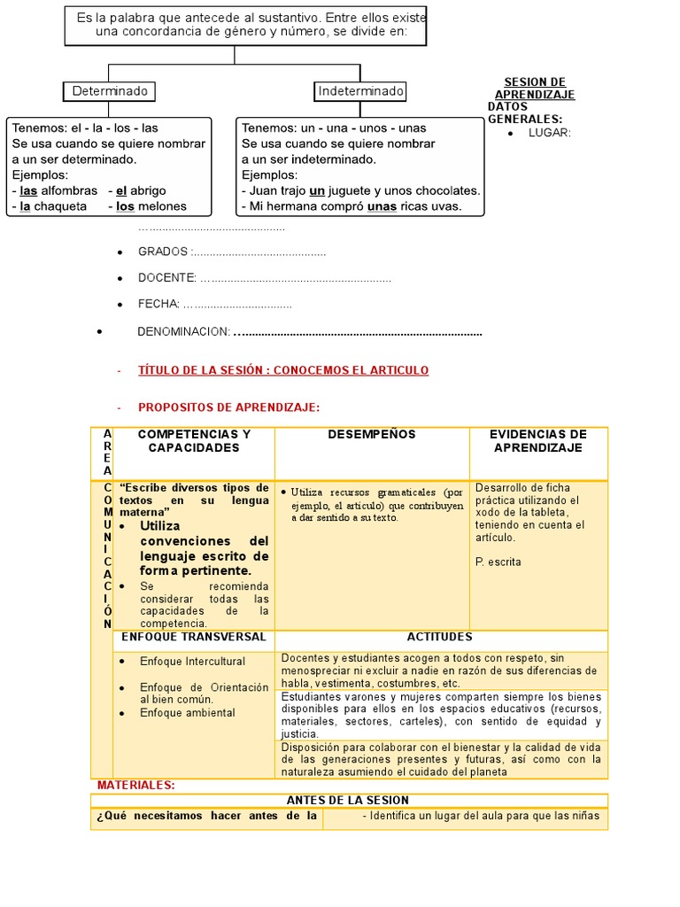 - TÍTULO DE LA SESIÓN : CONOCEMOS EL ARTICULO