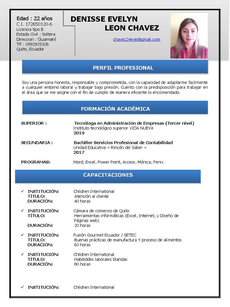 Soy una persona honesta, responsable y comprometida, con la capacidad de adaptarme facilmente