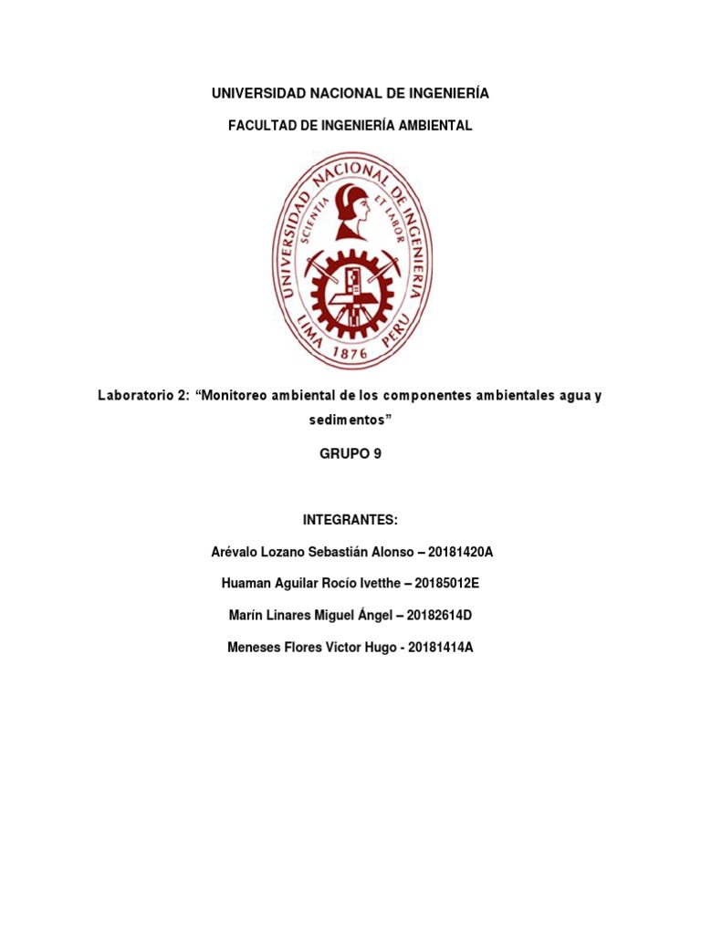 Laboratorio 2: “Monitoreo ambiental de los componentes ambientales agua y