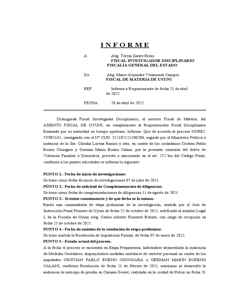 REF: Informe a Requerimiento de fecha 21 de abril