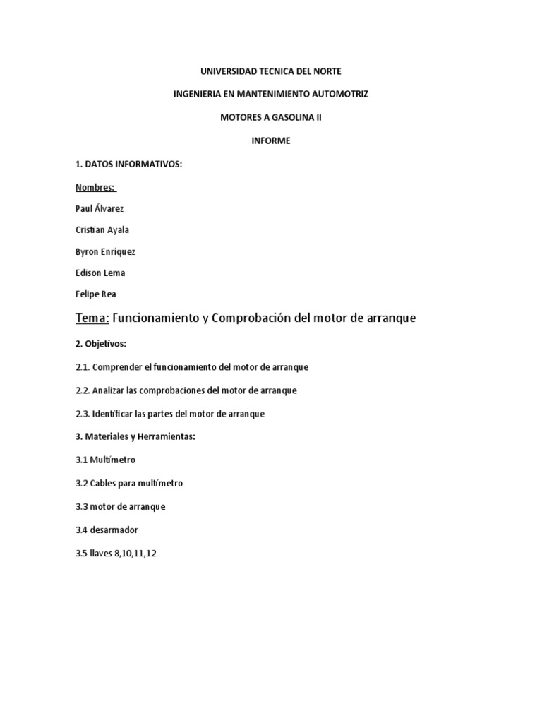 realizarse en el motor de arranque para conocer el estado del motor de arranque