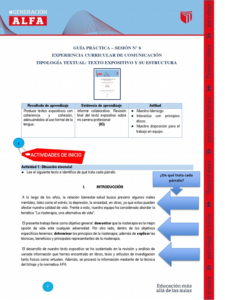 coherencia y cohesión, final del texto expositivo sobre ● Interactúa con principios