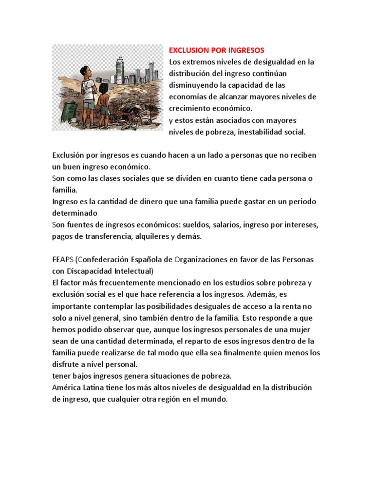 Exclusión por ingresos es cuando hacen a un lado a personas que no reciben