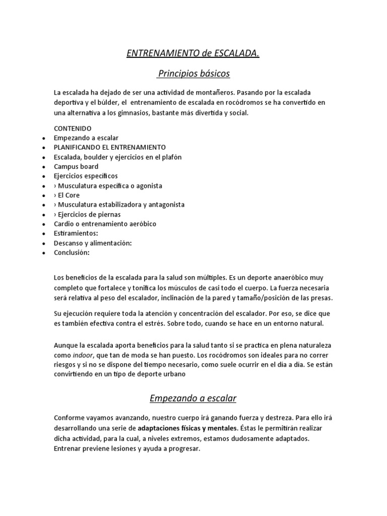 Son aquellos ejercicios que realizamos para subir de nivel escalando, cuando nos