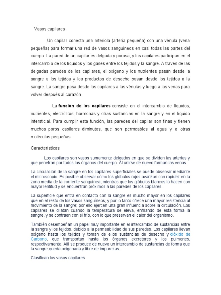 cuerpo. La pared de un capilar es delgada y porosa, y los capilares participan en el