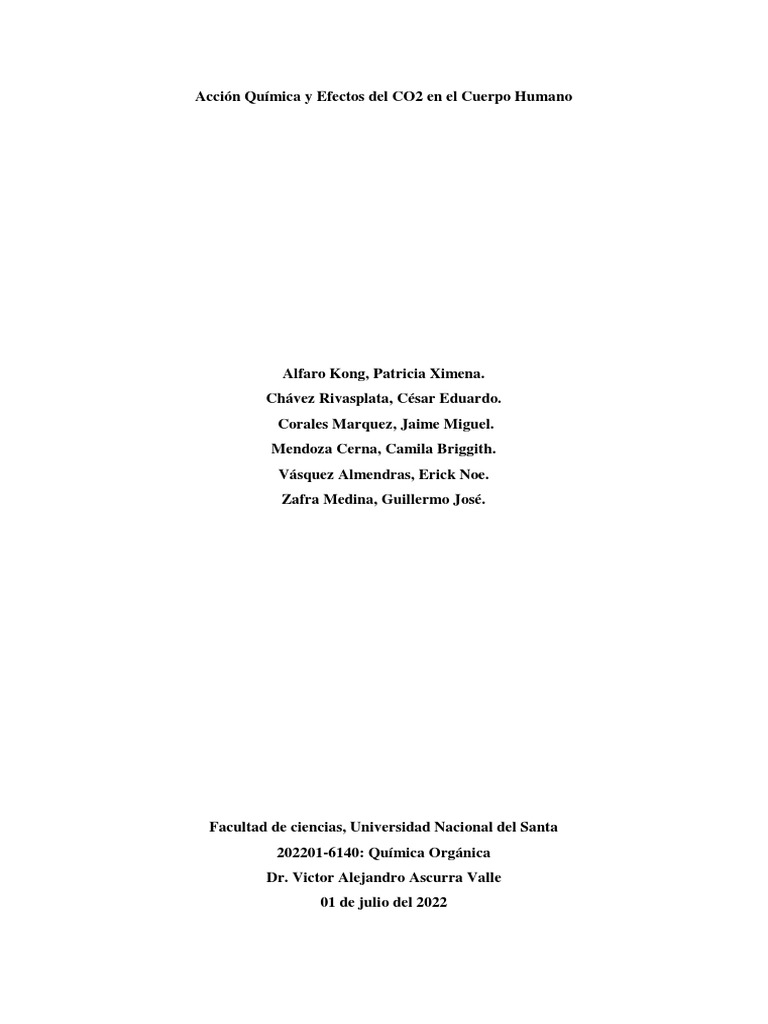 Acción Química y Efectos del CO2 en el Cuerpo Humano