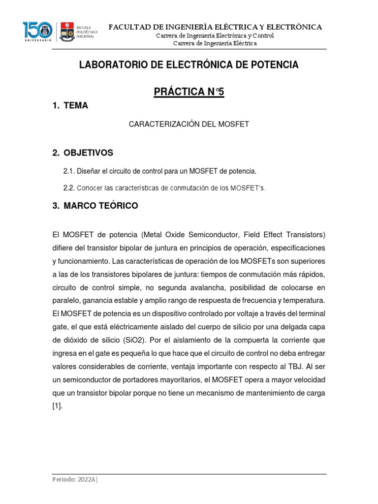 de voltaje, corriente y potencia en el MOSFET.