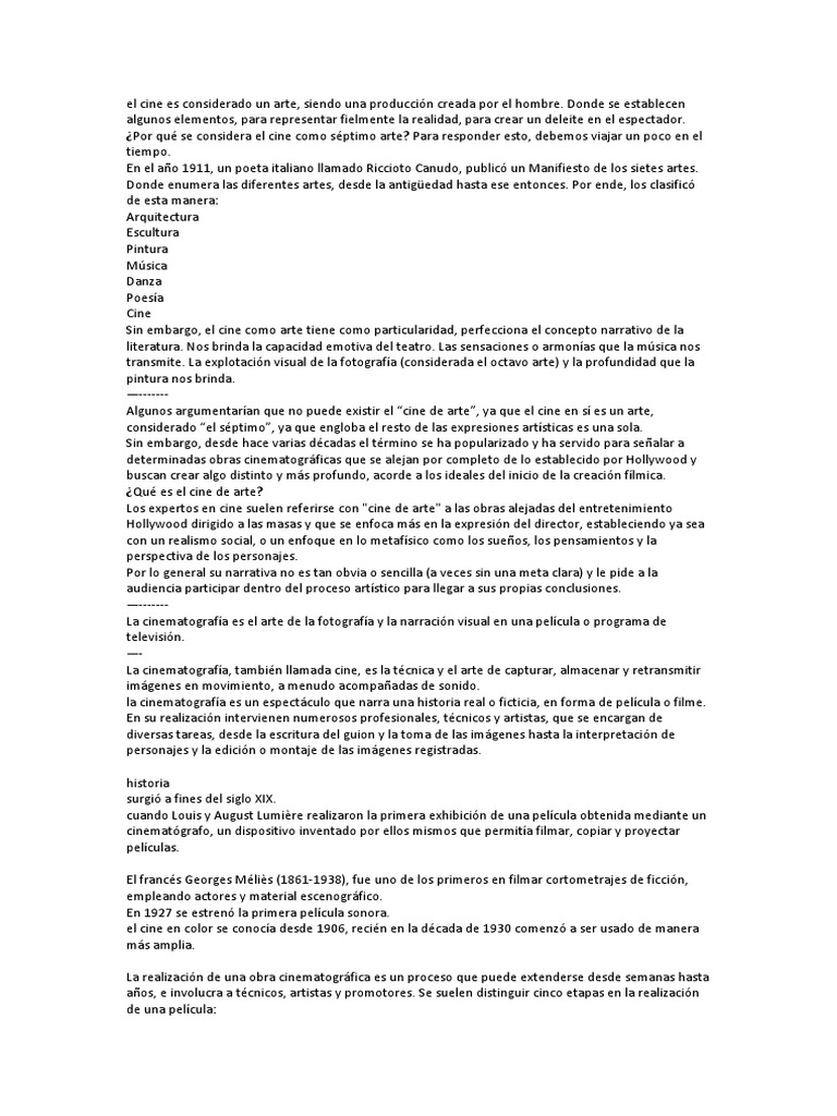 el cine es considerado un arte, siendo una producción creada por el hombre.