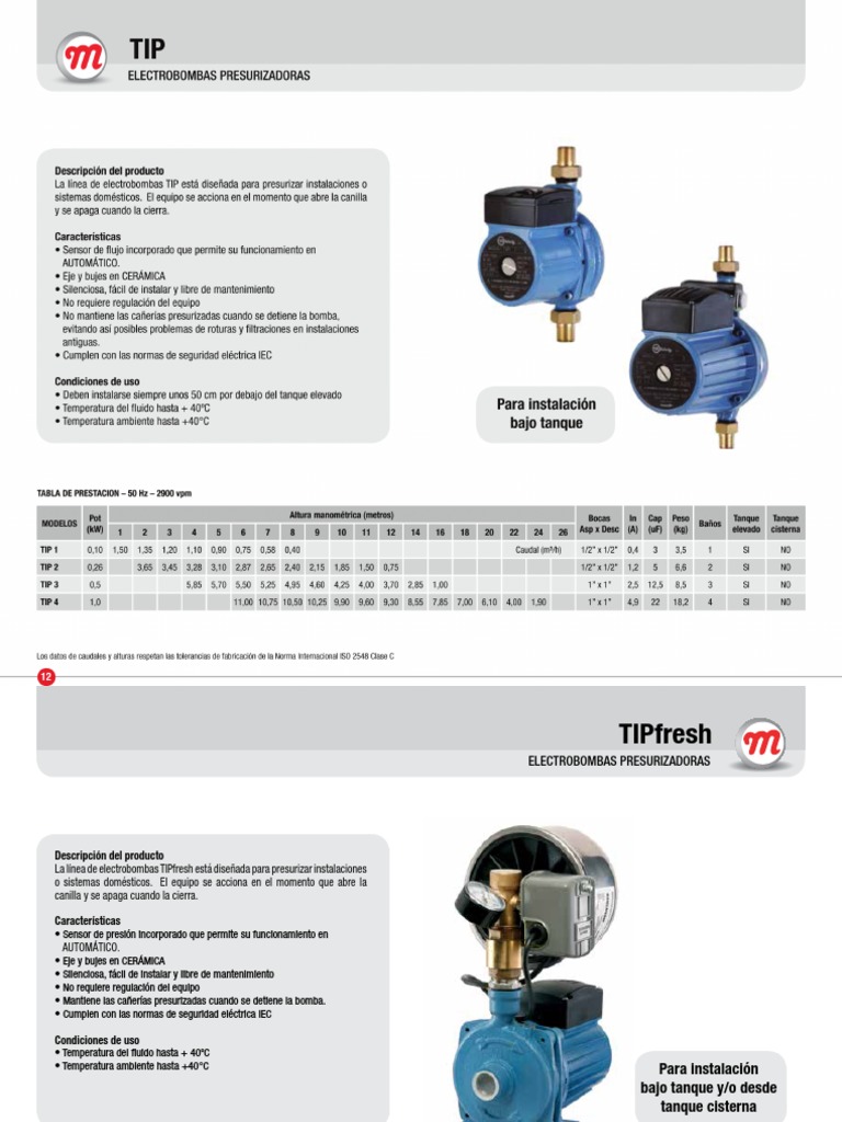 TIPfresh 3 0,5 6,30 6,00 5,85 5,70 5,50 5,25 4,95 4,60 4,25 4,00 3,70 2,85 1,00 Caudal (m³/h) 1” x 1” 2,5 12,5 8,5 3 SI SI