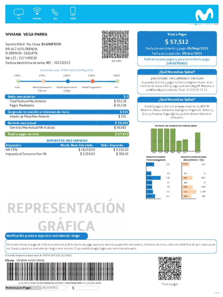 3142687229 VIVIANA VEGA PARRA Tu Plan PLAN MINUTOS + DATOS_3056 Incluye: $ 51,991