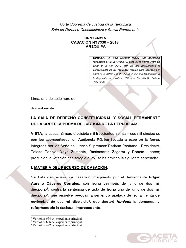 dieciocho1, contra la sentencia de vista de fecha uno de junio de dos mil