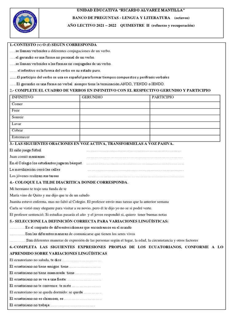 AÑO LECTIVO 2021 – 2022 QUIMESTRE II (refuerzo y recuperación)