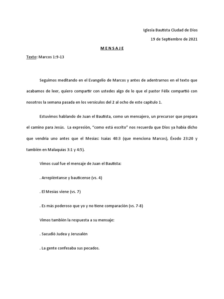 Vs. 9: “Y sucedió en aquellos días que Jesús vino de Nazaret de Galilea, y fue bautizado