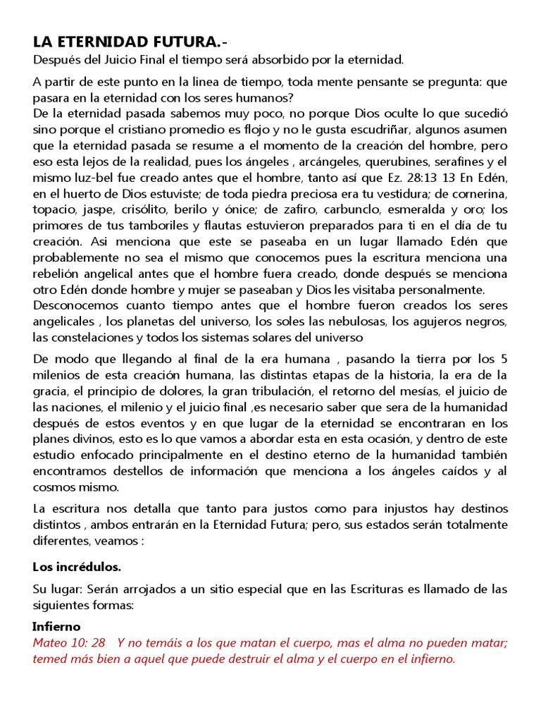 estudio enfocado principalmente en el destino eterno de la humanidad también