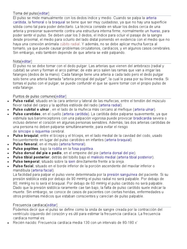Podemos decir que el pulso se define como la onda de sangre creada por la contracción del