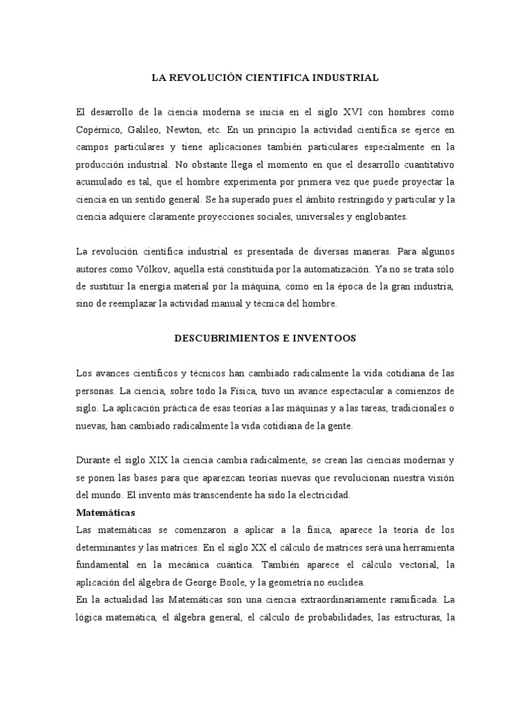 La revolución científica industrial es presentada de diversas maneras. Para algunos