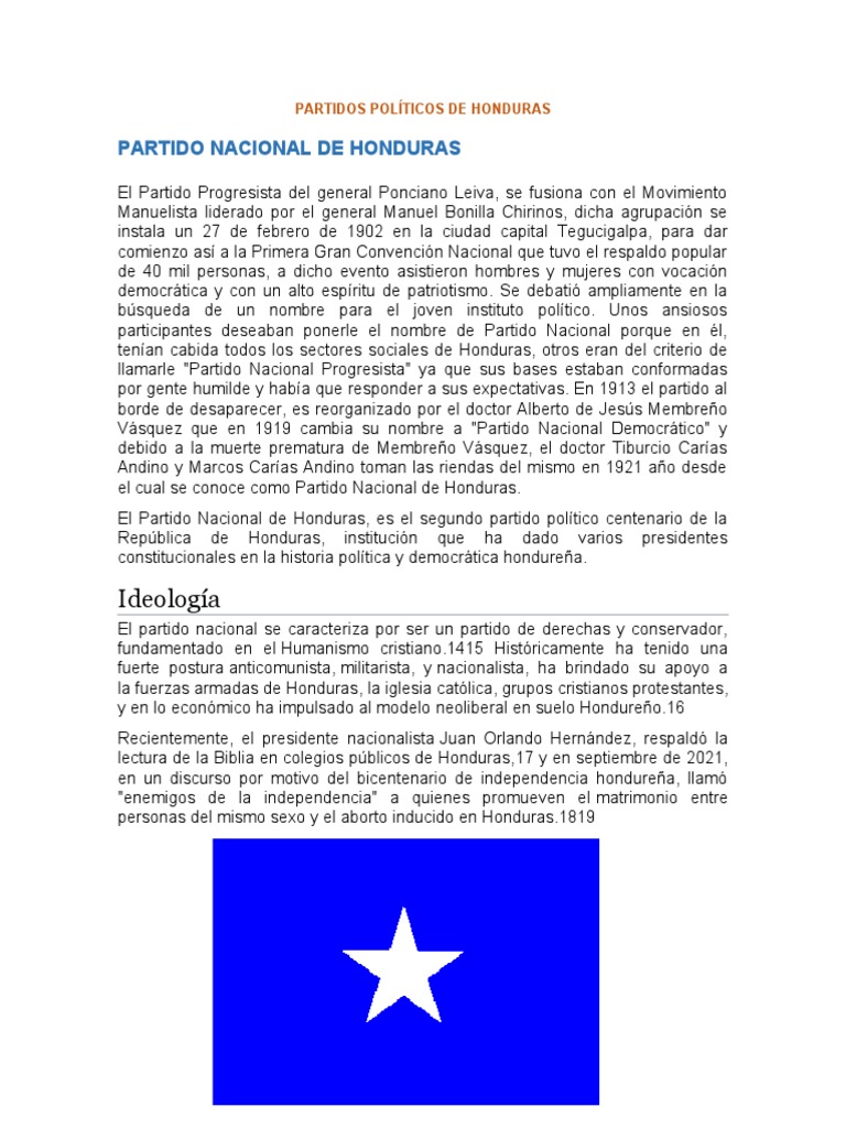 El Partido Nacional de Honduras, es el segundo partido político centenario de la