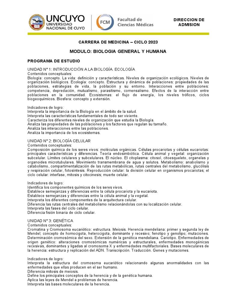 DIRECCIÓN DE ADMISIÓN. FACULTAD DE CIENCIAS MÉDICAS. UNIVERSIDAD NACIONAL DE