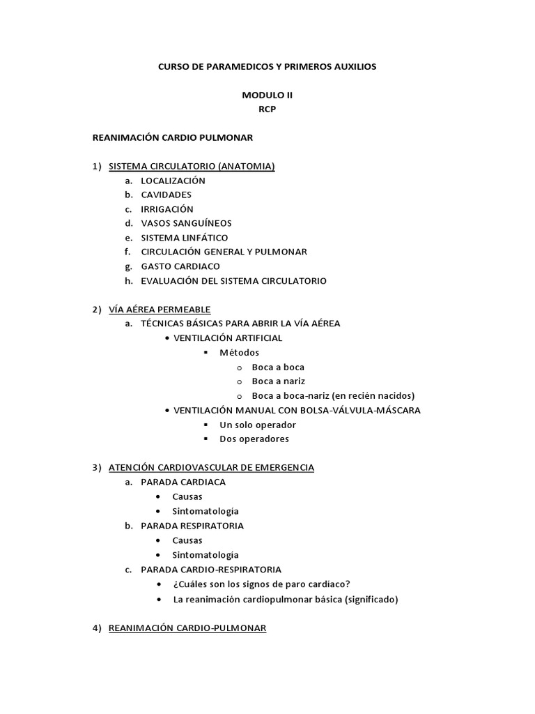 CURSO DE PARAMEDICOS Y PRIMEROS AUXILIOS