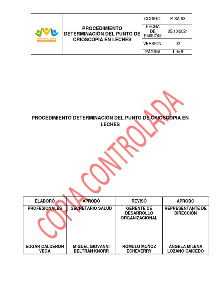 PROCEDIMIENTO DETERMINACIÓN DEL PUNTO DE CRIOSCOPIA EN