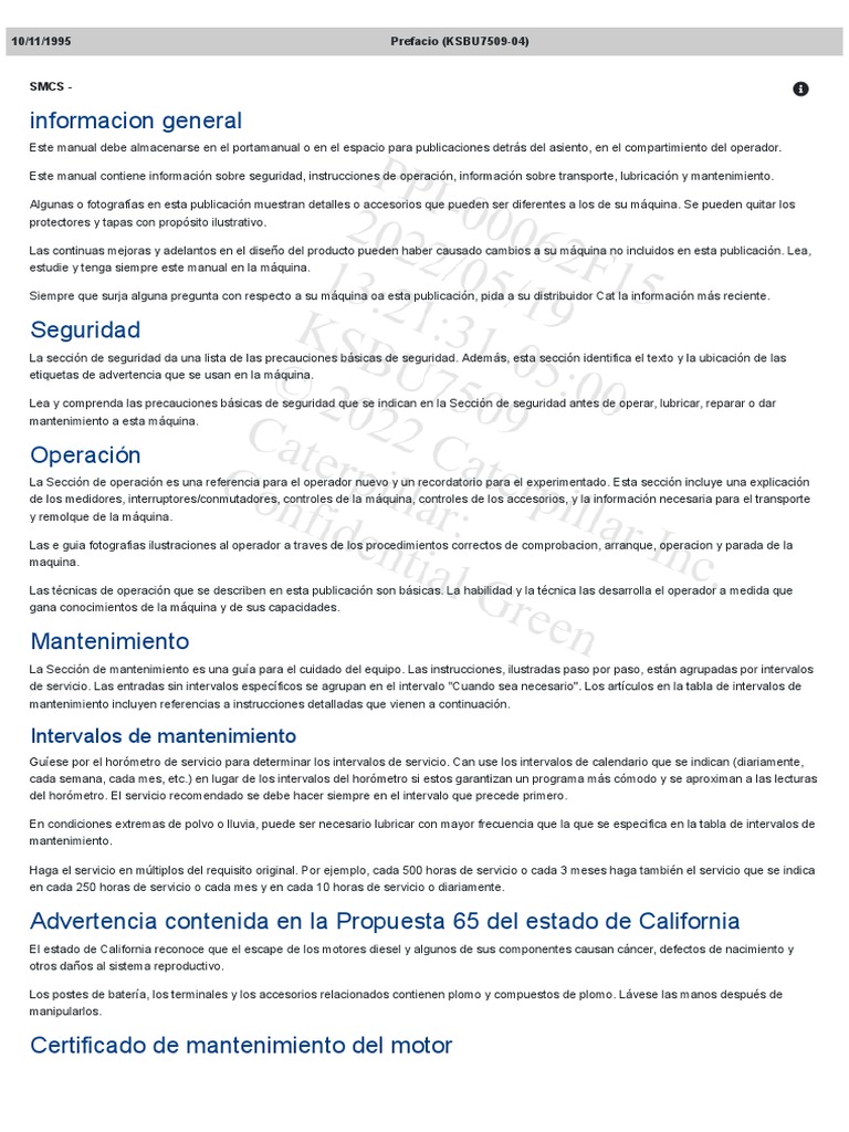 Siempre que surja alguna pregunta con respecto a su máquina oa esta publicación, pida a su distribuidor Cat la información más reciente.