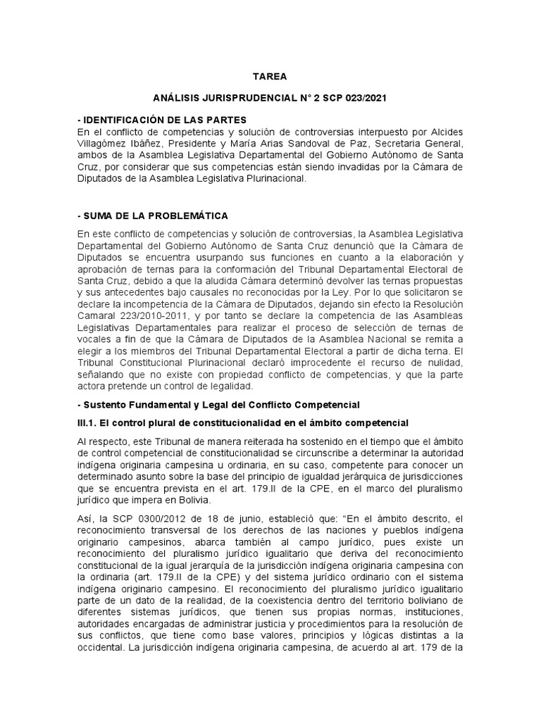 ANÁLISIS JURISPRUDENCIAL N° 2 SCP 023/2021