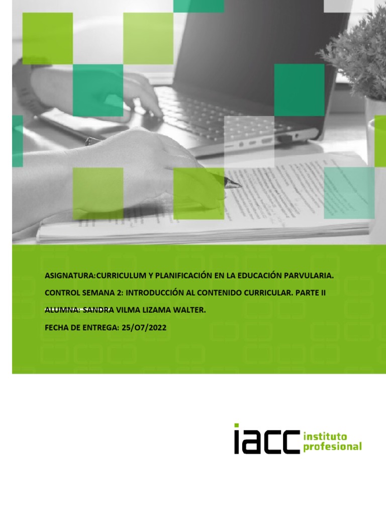 CONTROL SEMANA 2: INTRODUCCIÓN AL CONTENIDO CURRICULAR. PARTE II