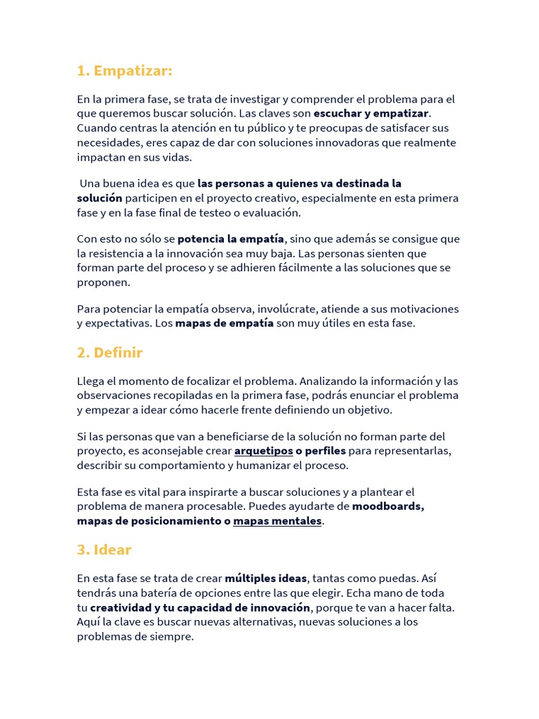 Esta fase es vital para inspirarte a buscar soluciones y a plantear el