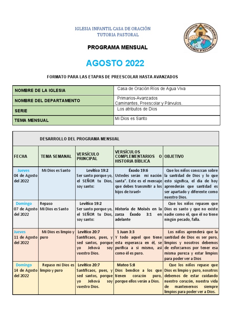 Jueves Mi Dios es Santo Levítico 19:2 Éxodo 19:6 Que los niños conozcan sobre