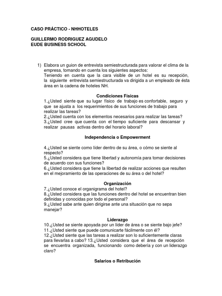 1) Elabora un guion de entrevista semiestructurada para valorar el clima de la