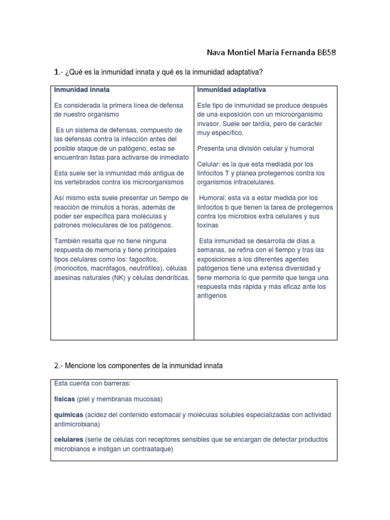 1.- ¿Qué es la inmunidad innata y qué es la inmunidad adaptativa?