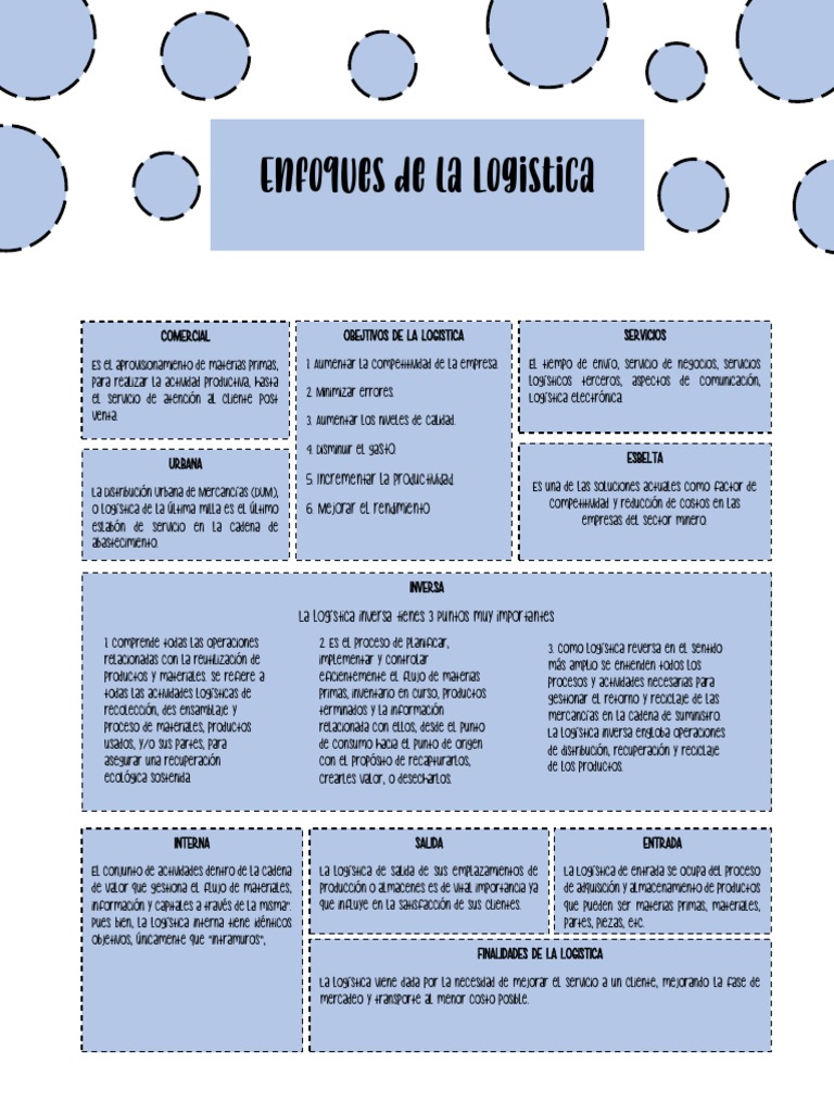 1. Comprende todas las operaciones 2. Es el proceso de planificar, 3. Como logística reversa en el sentido