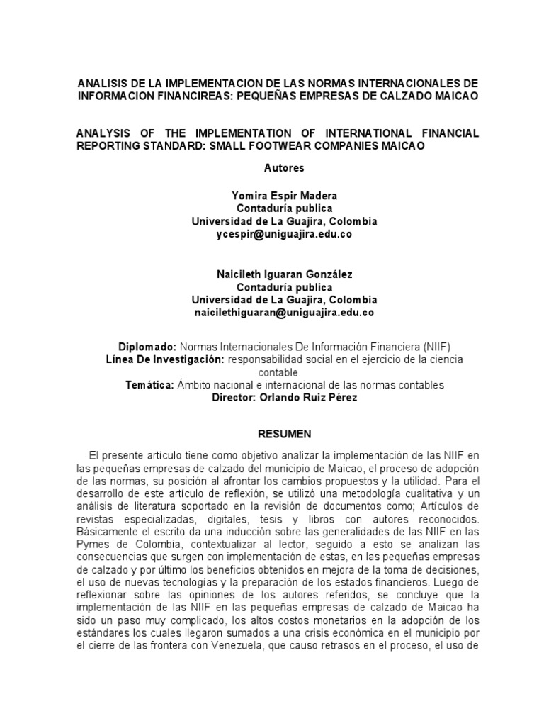 implementación de las NIIF en las pequeñas empresas de calzado de Maicao ha