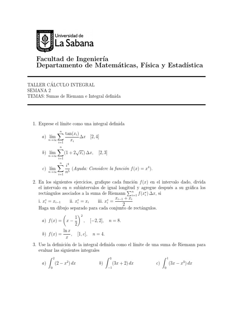 3. Use la definición de la integral definida como el lı́mite de una suma de Riemann para