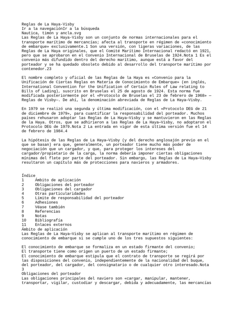 Reglas de Visby—. De ahí, la denominación abreviada de Reglas de La Haya—Visby.