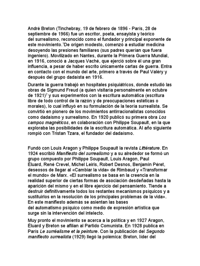 manifiesto surrealista (1929) llegó la polémica: Breton, líder del