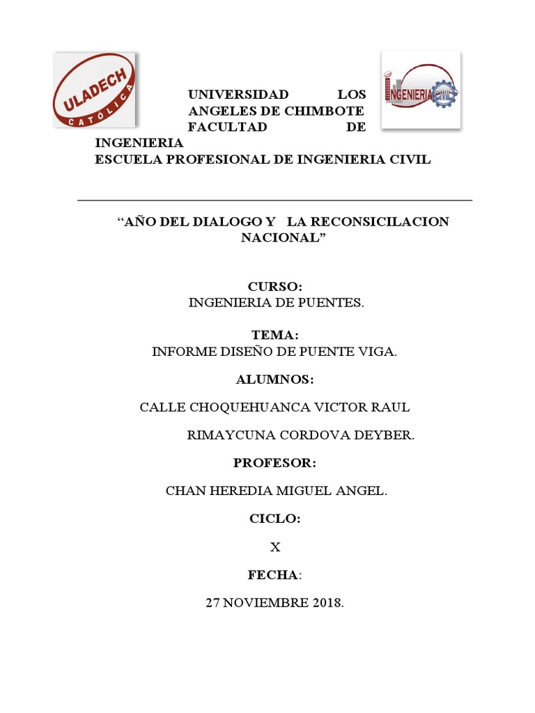 según el tipo de puente, el metrado de cargas, el diseño de losas, vigas, consideraciones