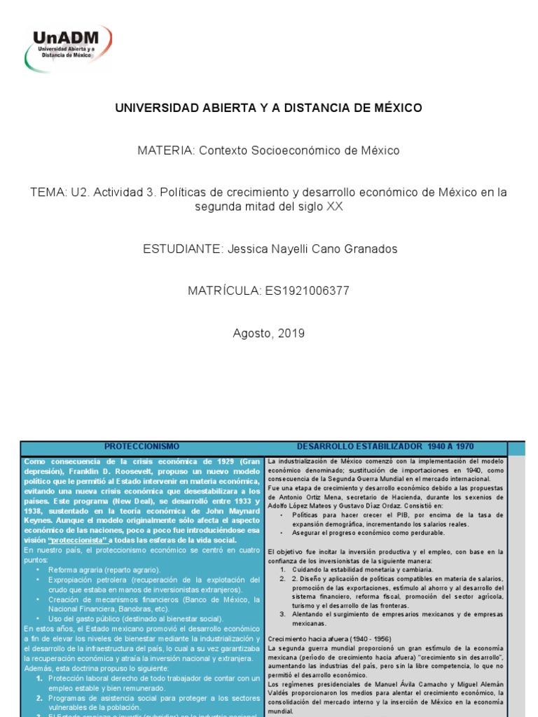 TEMA: U2. Actividad 3. Políticas de crecimiento y desarrollo económico de México en la