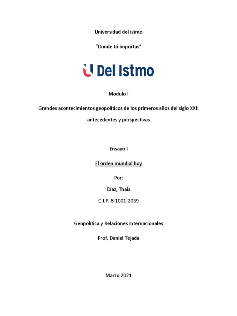Modulo I - Grandes acontecimientos geopolíticos de los primeros años del siglo XXI: antecedentes y perspectivas