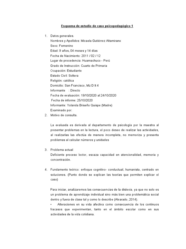 Nombres y Apellidos: Micaela Gutiérrez Altamirano