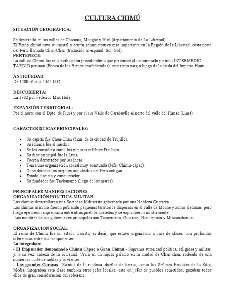 Los chimús desarrollaron una Sociedad Militarista gobernada por una Nobleza Guerrera.