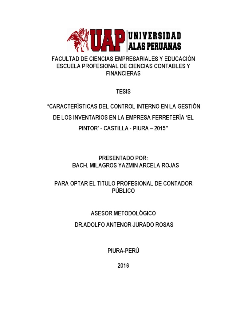 sobre cómo se encuentra el control interno de inventarios de la ferretería El Pintor-Piura 2015. Para