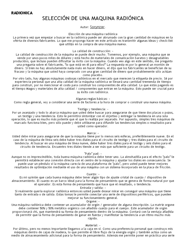máquinas radiónicos. Al final, usted debe seguir su intuición en la búsqueda de una máquina, si se siente un