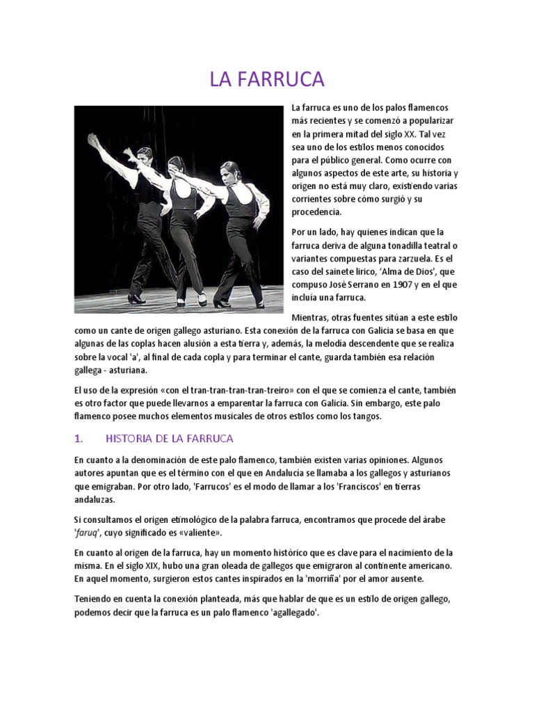 llevarnos a emparentar la farruca con Galicia, tal y como ocurre con el garrotín. Cabe apuntar la